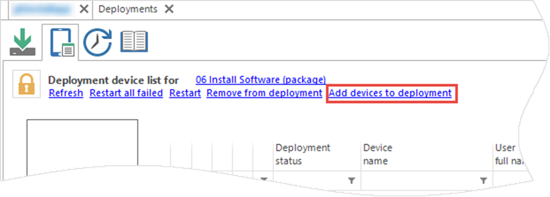 Select the deployment, and then click OK.The devices are added to the deployment.