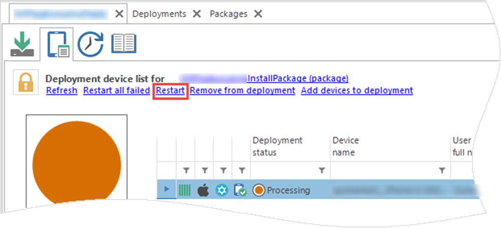 A deployment serves as a carrier for a package, and is sent out to a device. The device receives the deployment, reads the package settings, and executes them. For more information about packages, see Manage packages.